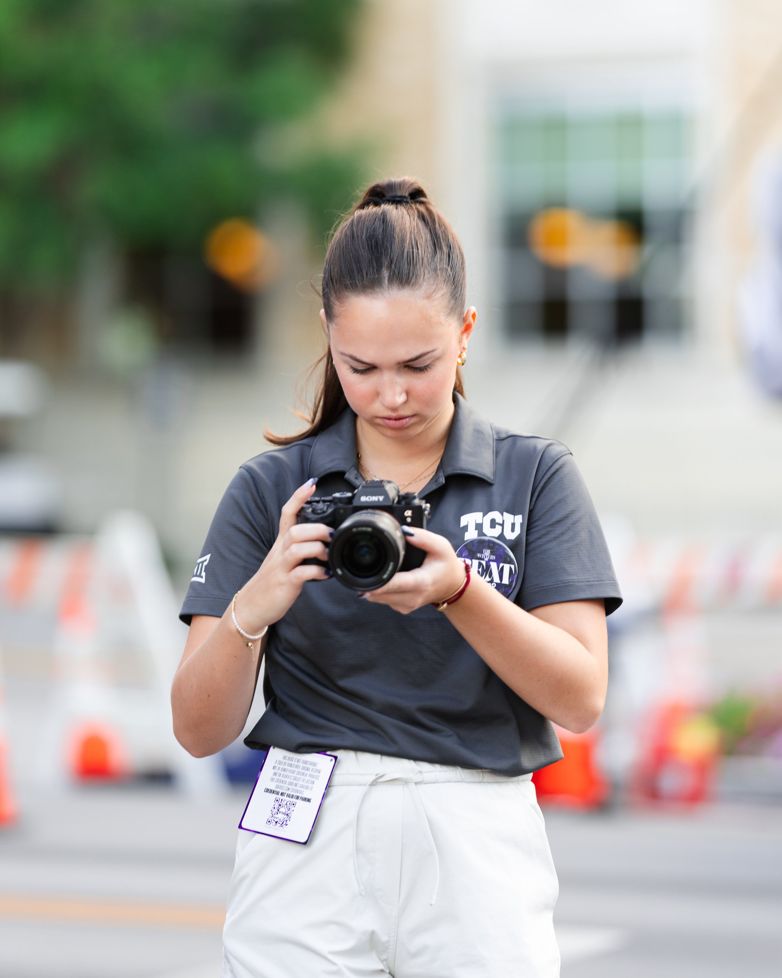 My blend of passions and love for sports has pushed me into new creative fields within my community. In 2025, I had the pleasure of joining the creative team at TCU Football to work as a creative intern. Not only does this role bring me closer to a sport that I love, but it has also allowed me to advance my photography skills to enhance my design. The blend of creativity, organization, and teamwork will continue to help me improve as a creative.