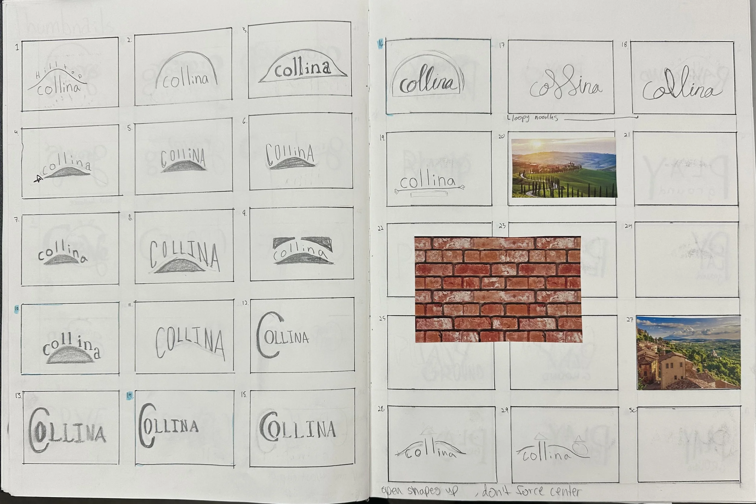 Starting with a logotype, a hill motif was used to convey the meaning and location of the restaurant. A traditional serif typeface was used in a lowercase setting to create an even and approachable appearance.