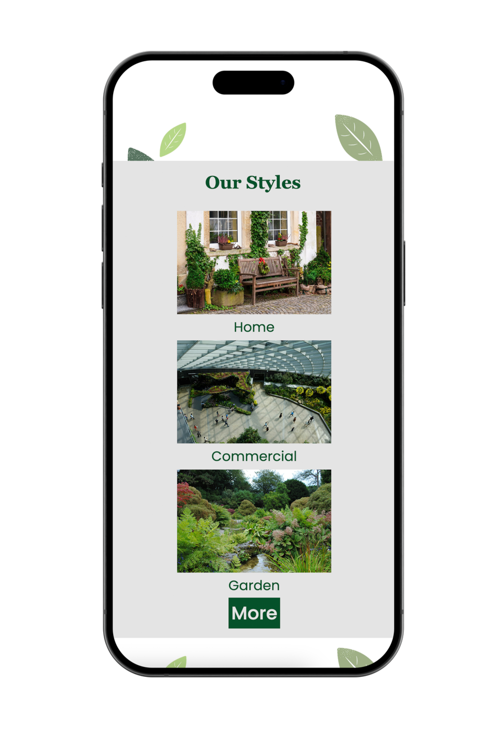 Finally, a website was designed and coded using HTML and CSS to complete the branding system. The site incorporates the same leaf iconography, modern typography, and photography-driven layouts to showcase the firm’s refined, polished work.